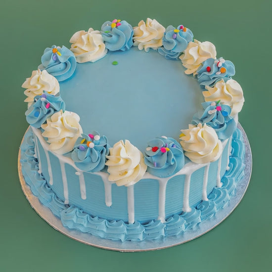 Enjoy a taste of heaven with our Blue Vanilla Cake! This beautiful cake has the perfect mix of sweet vanilla flavour and a lovely blue color.